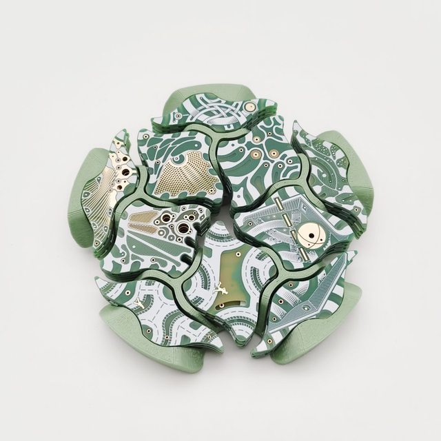 Hergestellt aus Leiterplattenmaterial (Printed Circuit Board), vergoldet.