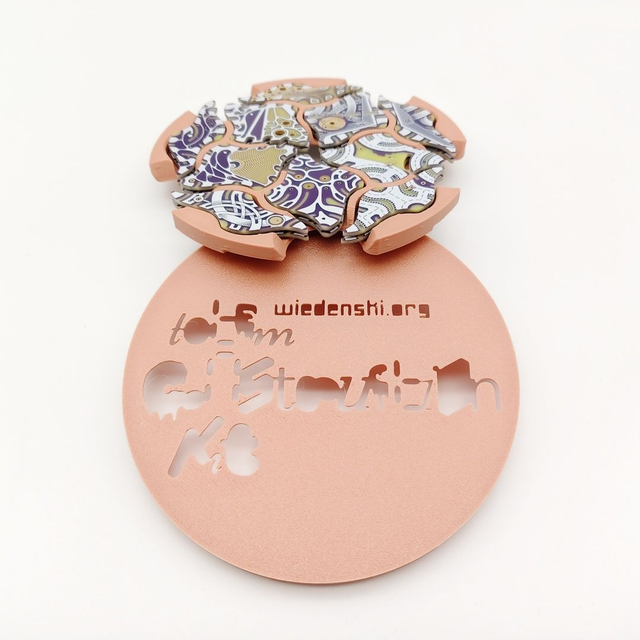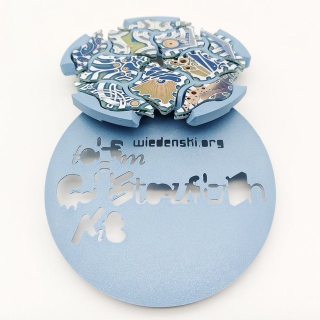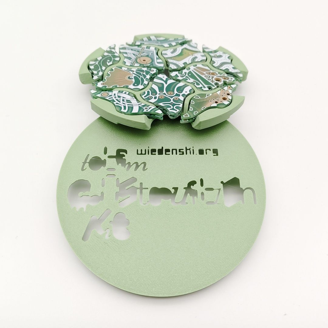 Hergestellt aus Leiterplattenmaterial (Printed Circuit Board), vergoldet.